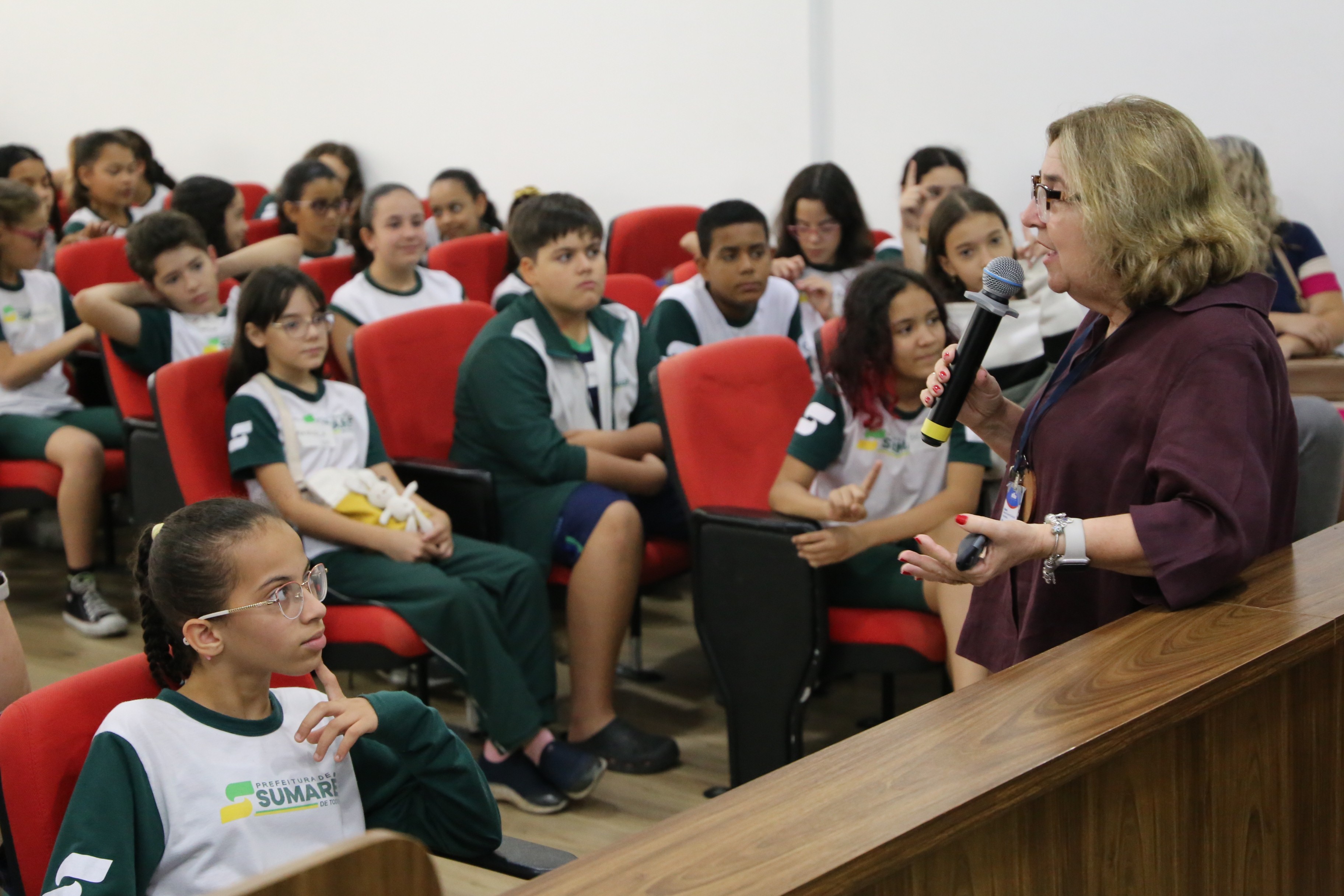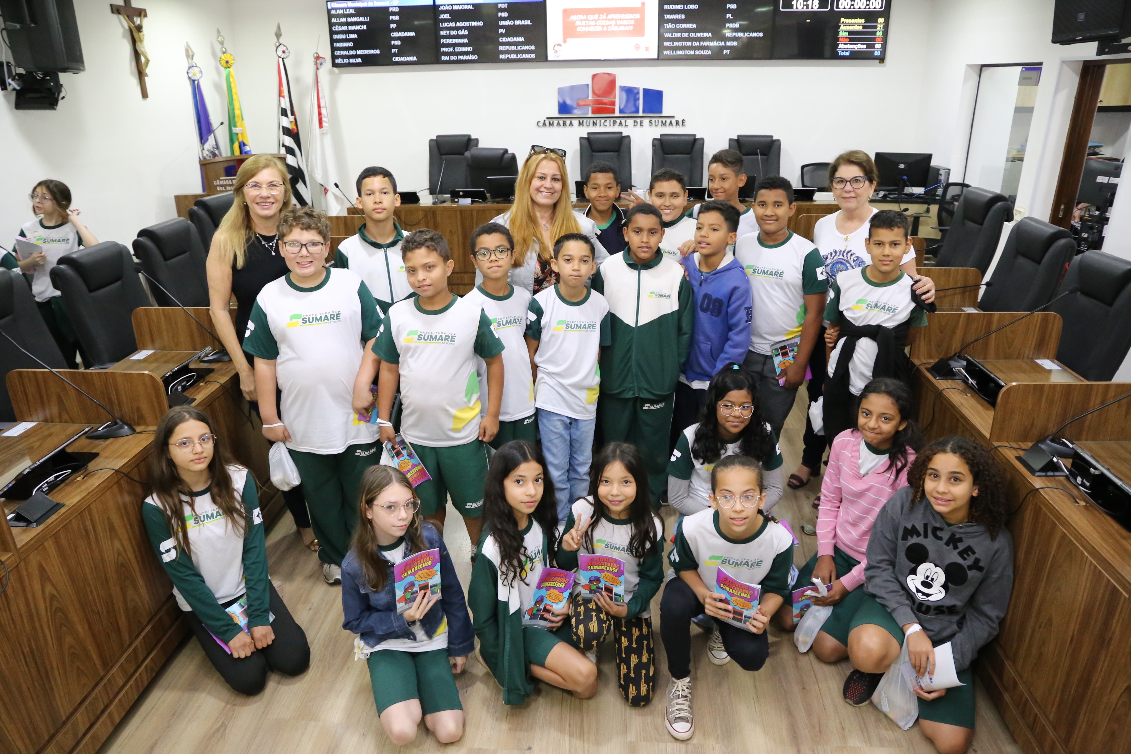 A Escola do Legislativo Professora Ceilita Miranda de Nadai, da Câmara Municipal de Sumaré, recebeu, nesta quinta-feira (2), a visita dos estudantes do 5º ano das escolas municipais Sabidinho e Dona Augusta Ravagnani Basso. O evento abre o novo ciclo do projeto “Jovem Cidadão: A escola vem à Câmara”, que promove visitas guiadas de estudantes à sede do Poder Legislativo.