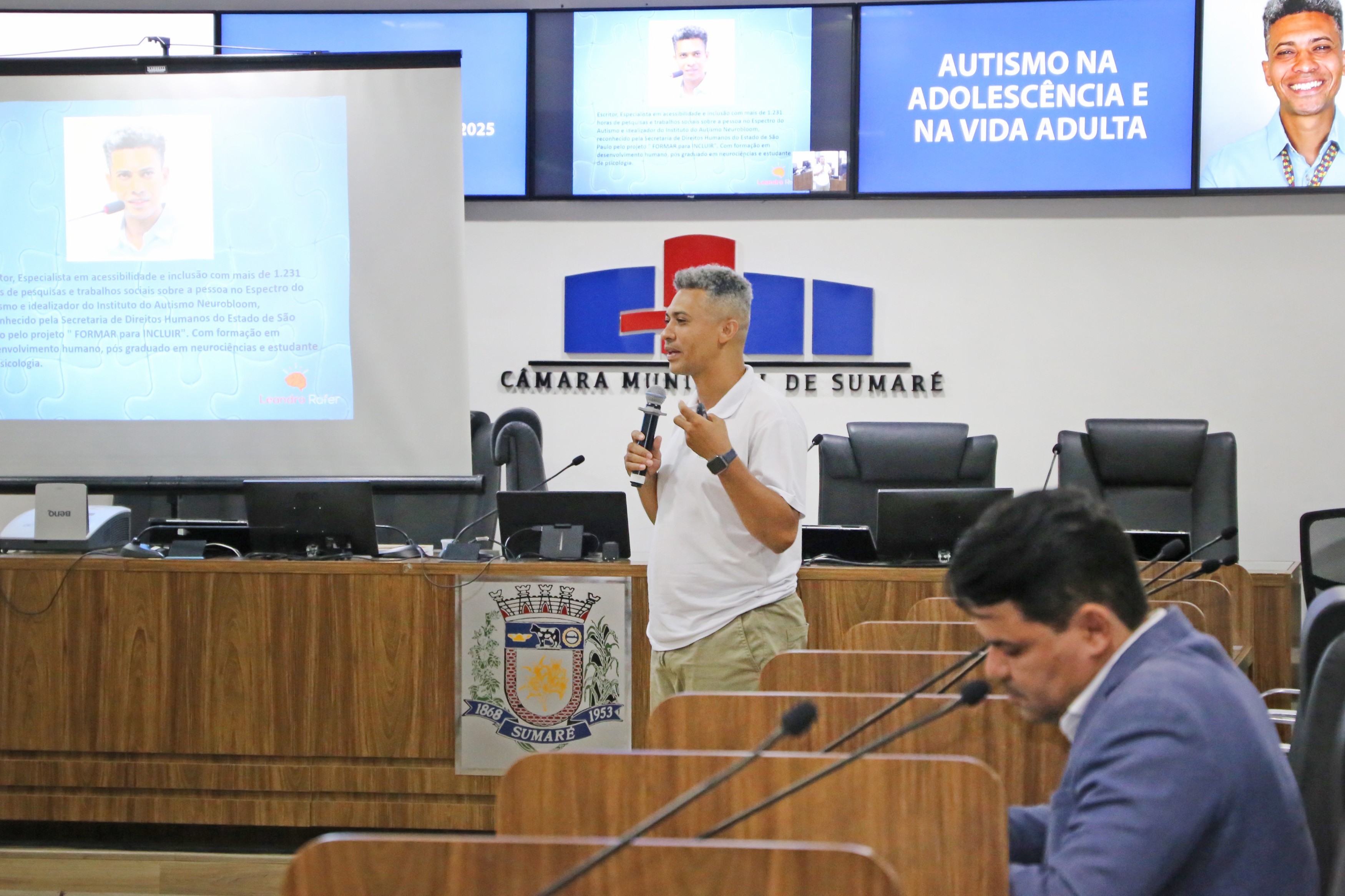 Evento ocorre na quarta-feira, às 19h, e será conduzido pelo escritor Leandro Rafer Venancio da Silva, especialista em acessibilidade e inclusão Na próxima quarta-feira (3), o plenário da Câmara de Sumaré recebe a palestra “Autismo na adolescência e na vida adulta”. Uma inic...