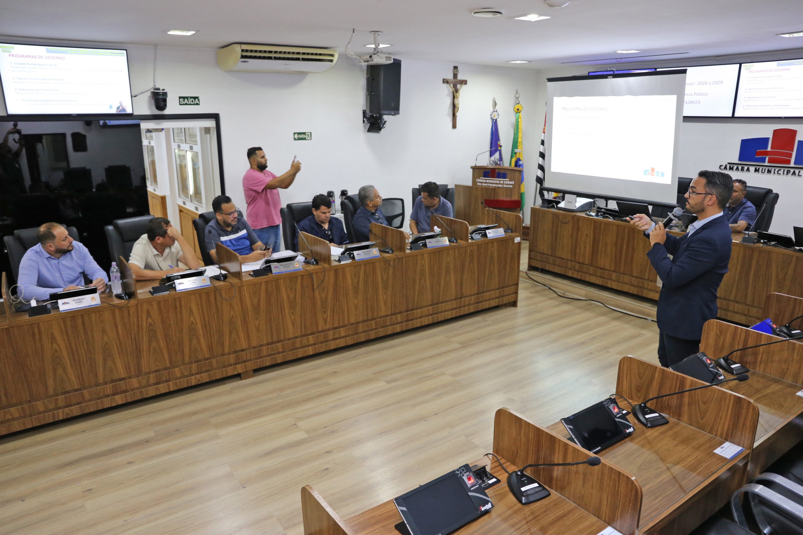 O Plano Plurianual (PPA) de Sumaré para o quadriênio 2026-2029 foi apresentado na Câmara Municipal, na noite desta quarta-feira (24). O Projeto de Lei nº 420/2025, de autoria do prefeito Henrique do Paraíso, foi detalhado durante audiência pública, dirigida pelo presidente da Câmara, vereador Hélio Silva (Cidadania). A reunião foi acompanhada pelos vereadores Joel Cardoso (PSD), Lucas Agostinho (União Brasil), Professor Edinho (Republicanos), Rodrigo Digão (União Brasil), Rudinei Lobo (PSB), Welington da Farmácia (MDB) e Wellington Souza (PT).