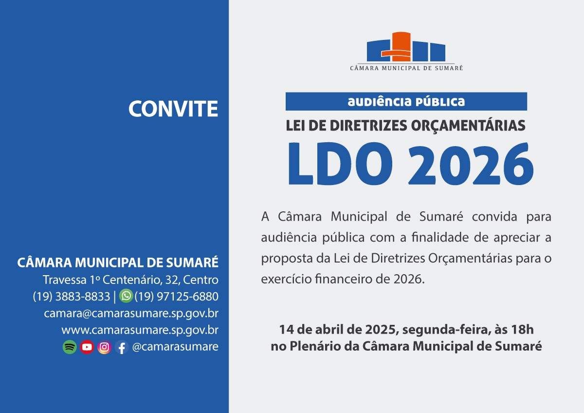 A Câmara Municipal de Sumaré vota, nesta terça-feira (9), em segundo turno, o projeto da Lei Orçamentária Anual (LOA) de 2026. Enviado pelo prefeito Henrique do Paraíso, o orçamento prevê arrecadação de R$ 1,8 bilhão para o próximo ano e estabelece como esses recursos serão distribuídos entre as áreas de governo. A análise final do projeto ocorrerá durante a 40ª sessão ordinária d...