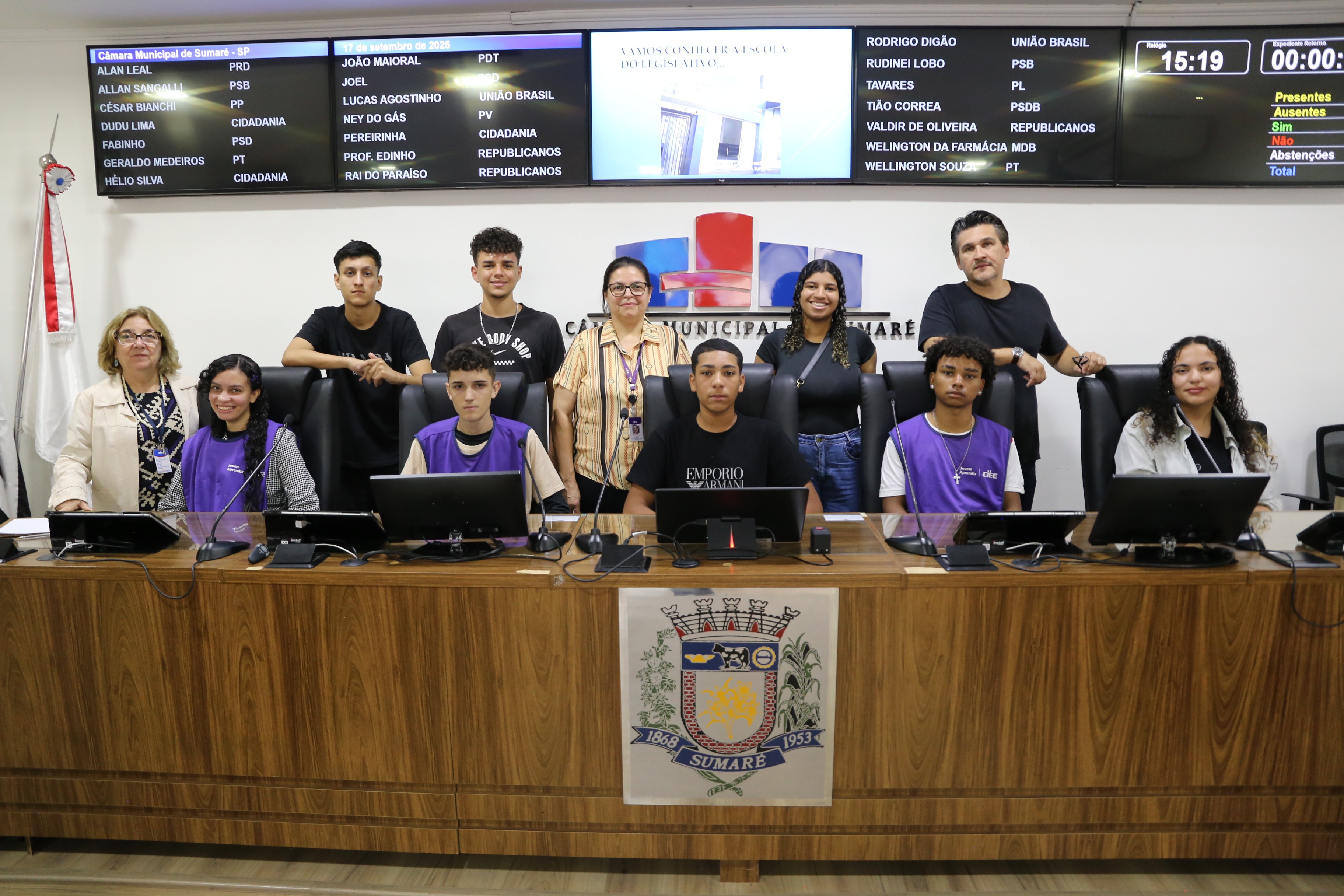 A Escola do Legislativo Professora Ceilita Miranda de Nadai, da Câmara Municipal de Sumaré, recebeu, durante o mês de setembro, turmas do Centro de Integração Empresa-Escola (CIEE). A programação desta quinta-feira (25) encerrou os quatro dias de visitas, que reuniram oito turmas formadas por cerca de 250 jovens aprendizes, entre estudantes do ensino médio e universitários. Eles puderam conhecer as dependências do Legislativo sumareense e entender as atribuições dos vereadores. A visitação das turmas do CIEE integra o projeto “Jovem Cidadão: A escola vem à Câmara”.