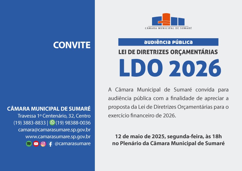 Peça do orçamento será votada em segundo turno com duas emendas impositivas de autoria do presidente Hélio Silva A Câmara Municipal de Sumaré vota, nesta terça-feira (9), em segundo turno, o projeto da Lei Orçamentária Anual (LOA) de 2026. Enviado pelo prefeito Henrique do Pa...